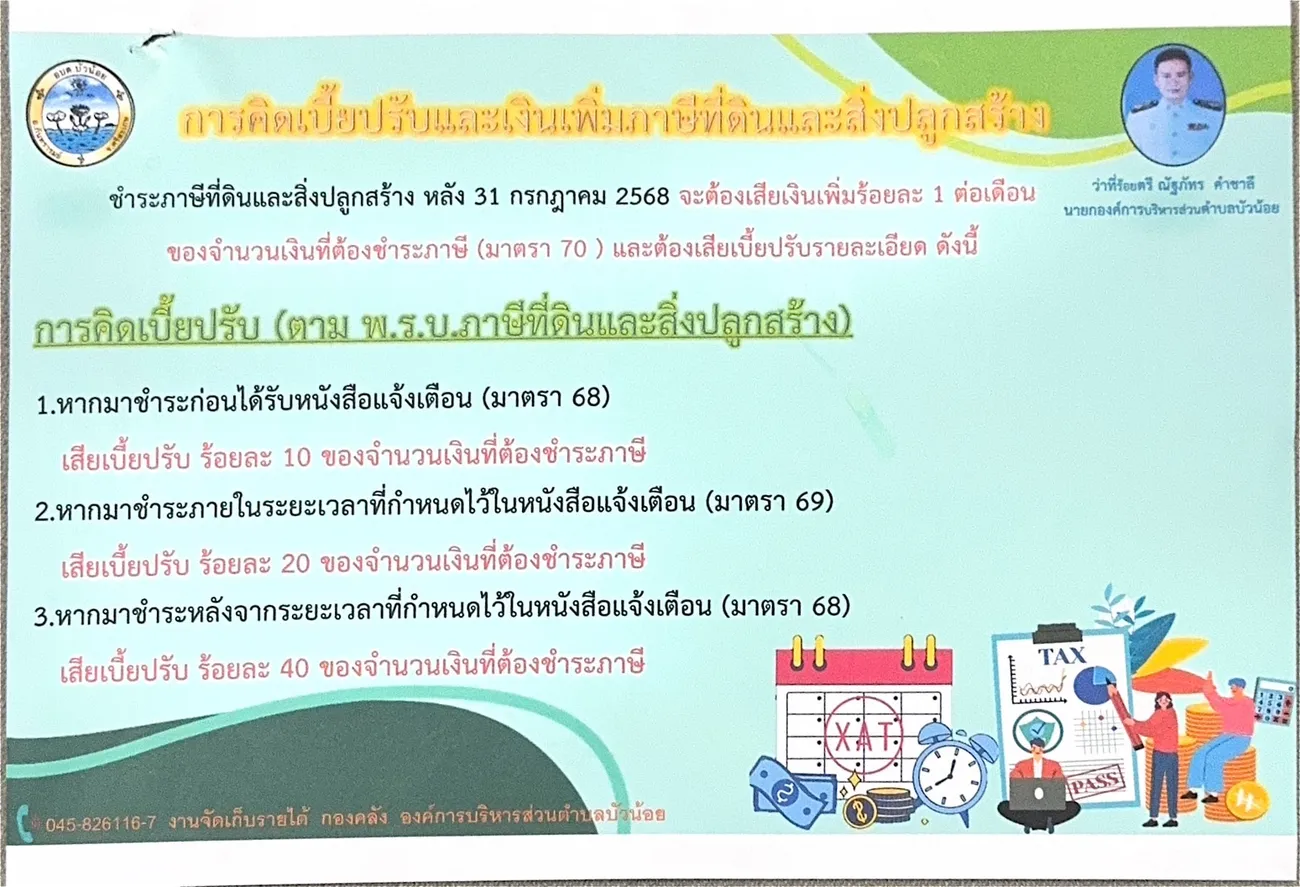 • การคิดเบี้ยปรับและเงินเพิ่มภาษีที่ดินและสิ่งปลูกสร้าง หลัง 31 กรกฎาคม 2568